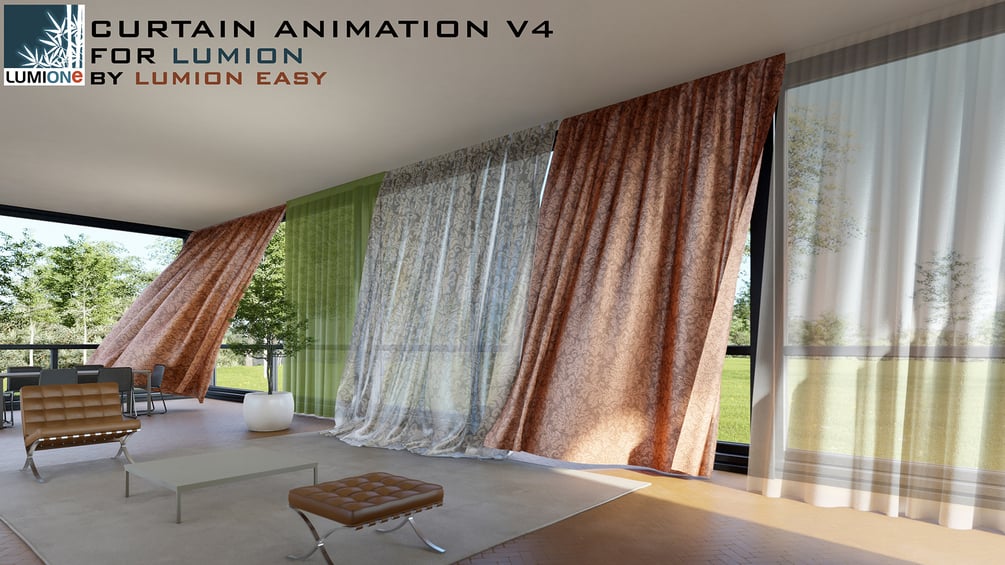 After a long time of research, we have succeeded with a moving curtain set for Lumion. Used for versions of Lumion 6-12 and above, because this is an imported curtain, you can change the material, color, texture..., this is a loop motion curtain. Common curtain sizes are 3x3m, 3x4m, 5x3m, 6x4m, the length of a curtain through the floor is 8x2m (pano size when not elastic). We've worked hard to build capacity-optimized models to fit your many computer configurations. Should leave the light in Dynamic mode, use soft shadow effect, use texture full size scale 1:1. Render for every FPS, but you should Render at FPS 30 or higher for better results. We have free versions available for you to try, but you should purchase them to help us continue to research better products. Thank you !